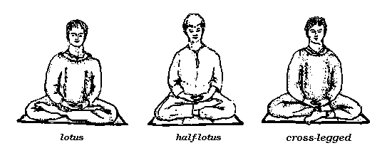 Use a posture that will keep your back straight without strain. A simple upright chair may be helpful, or you may be able to use one of the lotus postures (See the " Notes on Posture"). These look awkward at first, but in time they can provide a unique balance of gentle firmness that gladdens the mind without tiring the body.