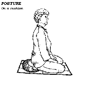 Use a posture that will keep your back straight without strain. A simple upright chair may be helpful, or you may be able to use one of the lotus postures (See the " Notes on Posture"). These look awkward at first, but in time they can provide a unique balance of gentle firmness that gladdens the mind without tiring the body.