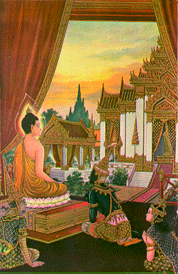 remains of King Suddhodana at the Cremation Ceremony, and taught the four Buddhist
